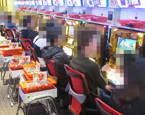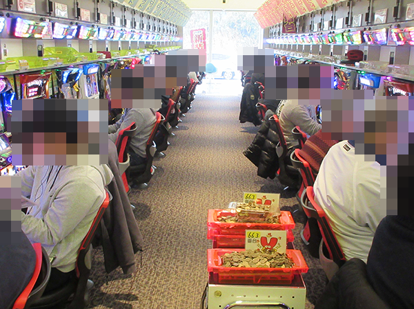 午後の20円パチスロにおいて、もっとも目立っていたのが「ミリオンゴッド-神々の凱旋-」。機種の性能を最大限まで引き出しているといったプレイヤーがおり、明るい表情からは満足度の高さもうかがえた。
