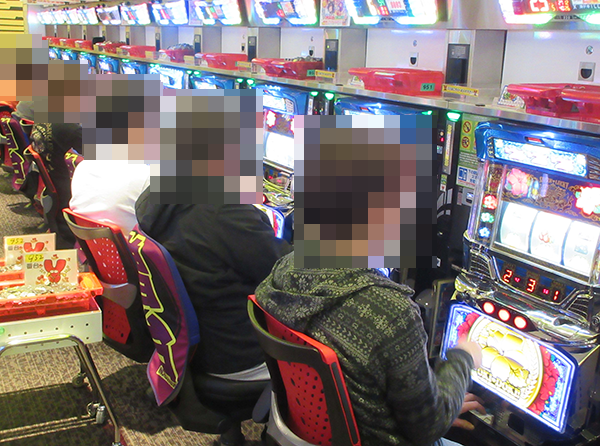 ボーナスタイプも好評となっており、ひときわ盛り上がっていたのがジャグラーシリーズ。にこやかな表情で遊技をおこなっているプレイヤーも多く、シマ全体に充実した時間が流れているように思えた。