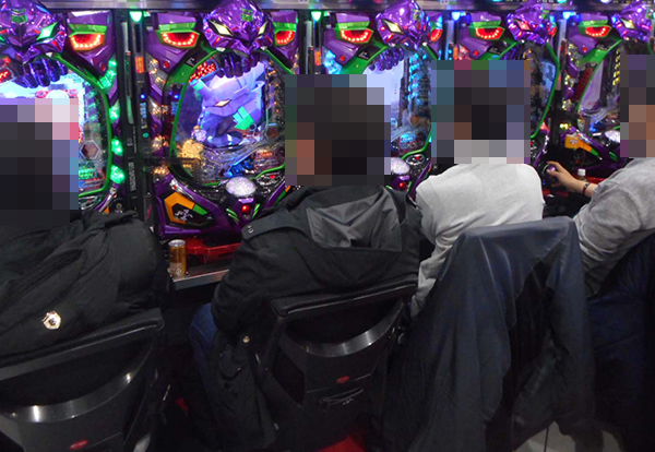 開店直後のパチスロをみると、「バジリスク~甲賀忍法帖~絆」や新機種の「新世紀エヴァンゲリオン~まごころを、君に~2」など、数々の機種が満席となっていた。