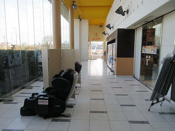 ホール内にはガラス張りの休憩スペースが設けられており、マッサージチェアーも完備。無料でWi-Fiに接続できる環境が整っていることなども含めて、1日を通して快適に楽しめる印象を受けた。