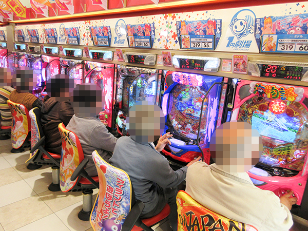 店内を見渡すと、パチンコ・パチスロを問わず、遊技を楽しんでいる多くのプレイヤーでにぎやかな雰囲気となっていた。