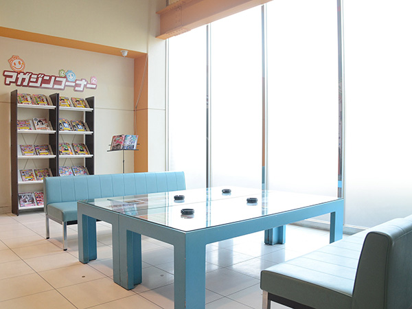 レストスペースにはバラエティに富んだ雑誌のほか、多彩なジャンルの漫画本を用意。リラックスできる空間があることも、プレイヤーにとって嬉しいところだ。