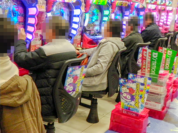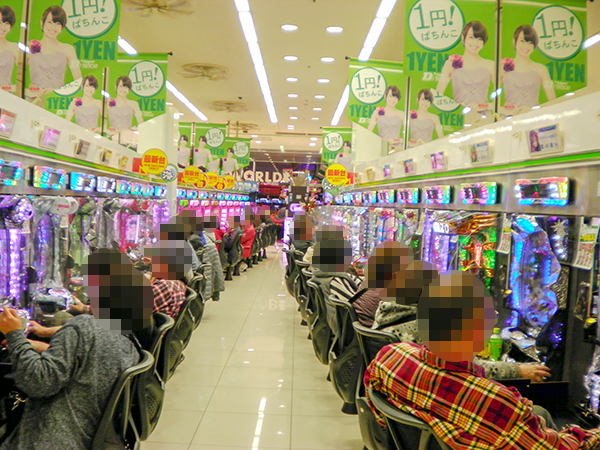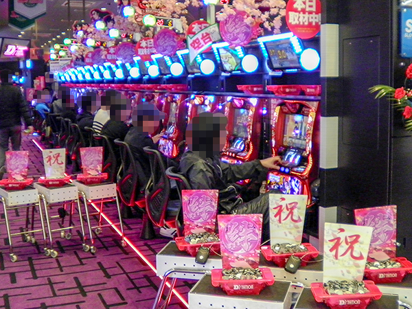 1円・0.5円・0.2円といった低貸し玉パチンコは、3種類とも高い人気。プレイヤーたちのはじける笑顔を、至る所で目にしている。