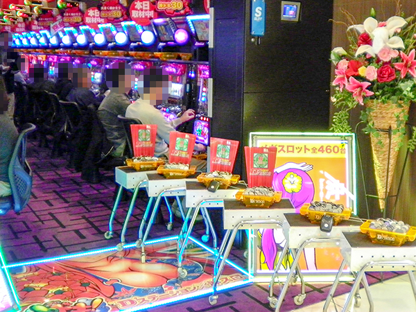 14時ごろの4円パチンコでは、「CR大海物語4」や「CRアントニオ猪木 打てばわかるさ! ありがとぉー!!!」が盛況に。機種のポテンシャルを上手く発揮するプレイヤーの姿が数多く見られた。