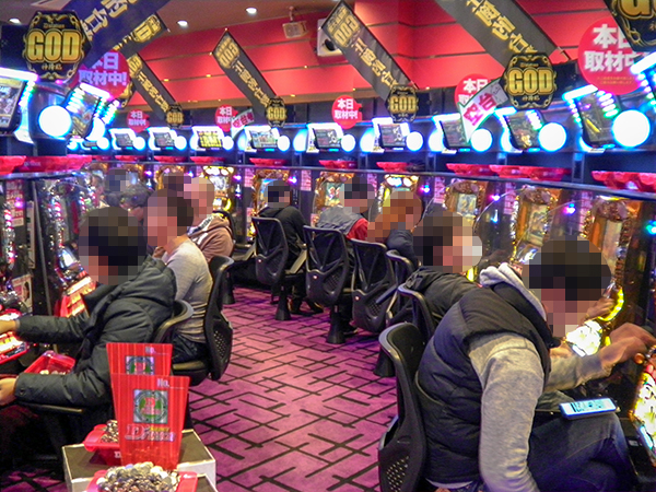 大勢のプレイヤーでにぎわう店内を見渡すと、パチンコ・パチスロ各シマ共に明るいシーンが広がっていた。