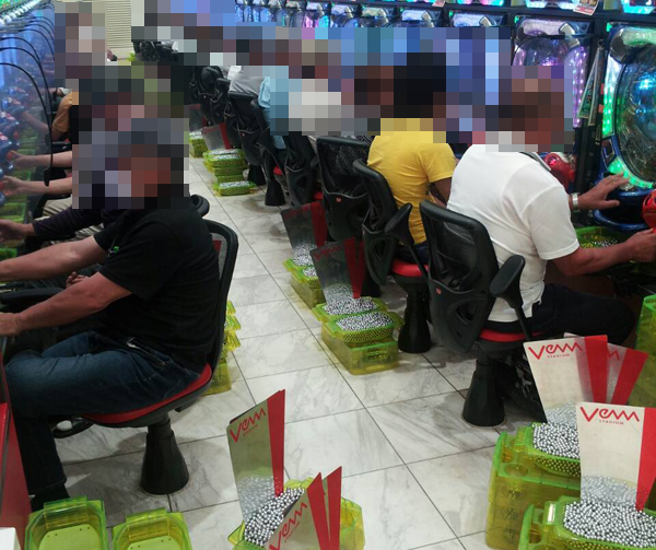 大規模な設置台数を誇る1円パチンコも、空き台がほとんど見られないほどに稼働が高かった。
