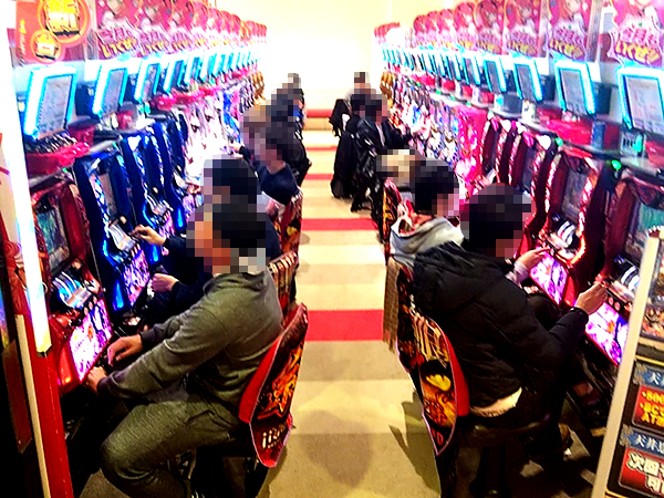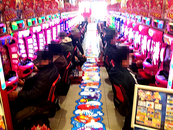 さらに、「バジリスク~甲賀忍法帖~絆」や「ミリオンゴッド-神々の凱旋-」もにぎわっており、機種の人気ぶりを改めて再確認した光景であった。