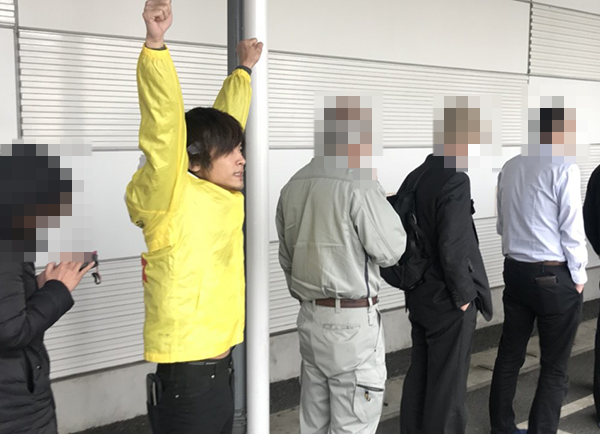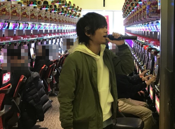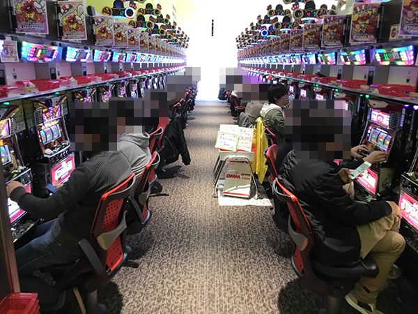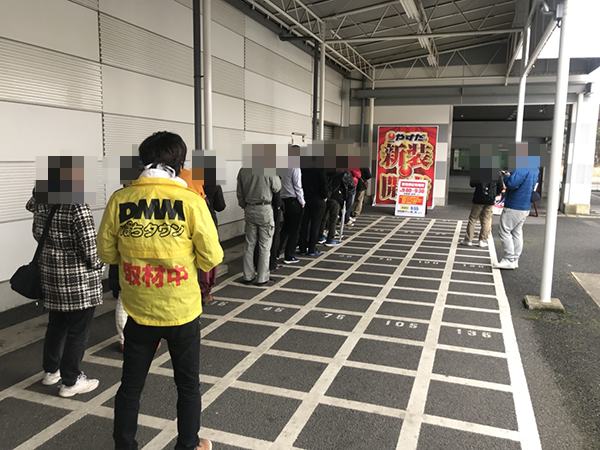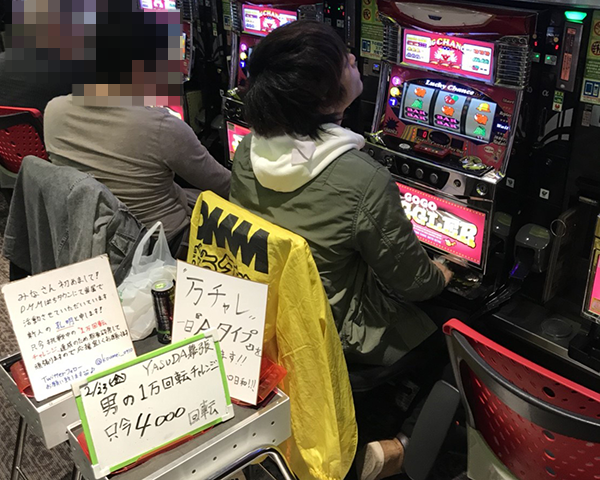 朝イチのホール前をみると、整列場所に並ぶプレイヤーたちとともに、元気いっぱいといった様子で開店時間を待っていた。