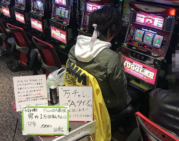 ただひたすらにレバーを叩き、ただひたすらに1万回転を目指す…。