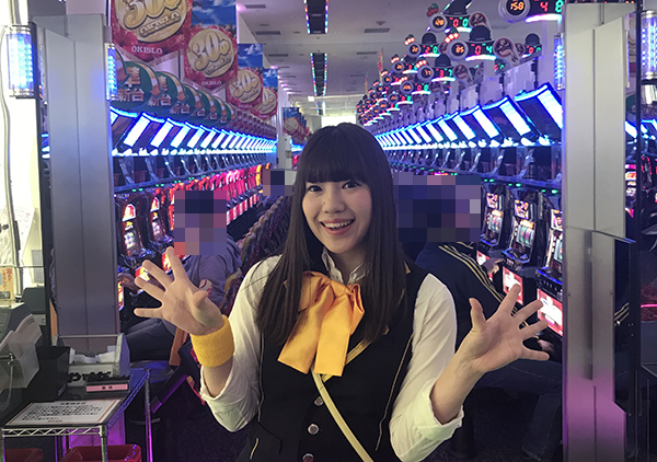 さやなちゃんは、パチンコとパチスロの両方で遊技に挑戦。