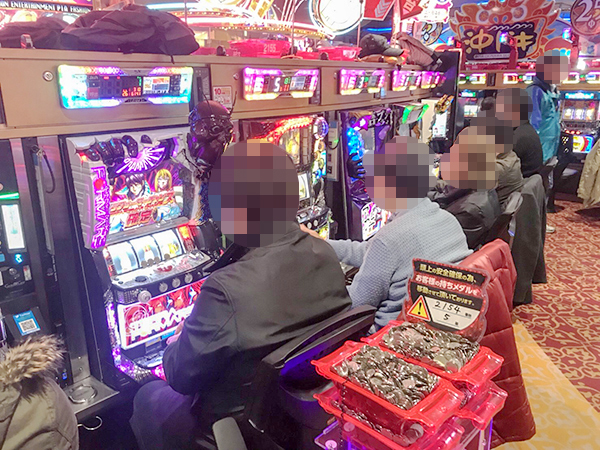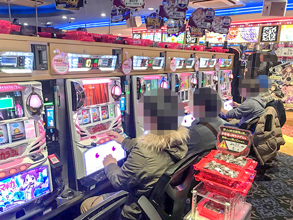 20円パチスロを見てみると、「SLOT魔法少女まどか☆マギカ」や「バジリスク~甲賀忍法帖~絆」、GODシリーズが大盛況。機種の性能を最大限に引き出すプレイヤーの姿も印象に残っている。