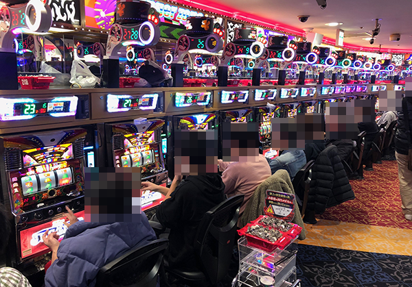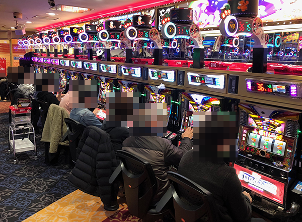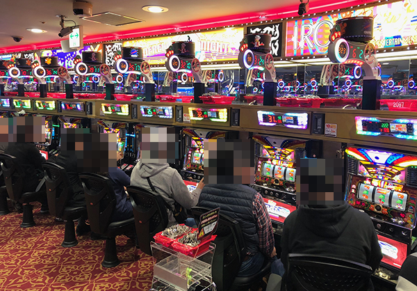 フル稼動となっている「マイジャグラーⅢ」において、見事なパフォーマンスを披露するプレイヤーを目撃。シマ内に広がる華やかな光景も魅力的であり、心から遊技を楽しめている様子がうかがえた。