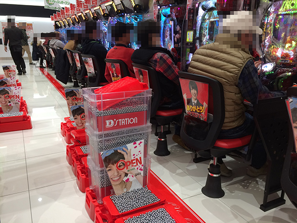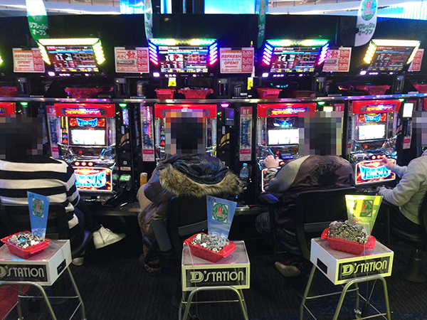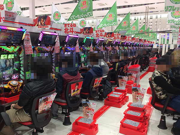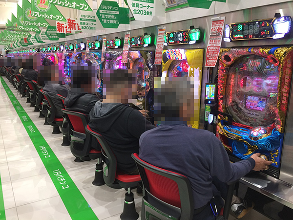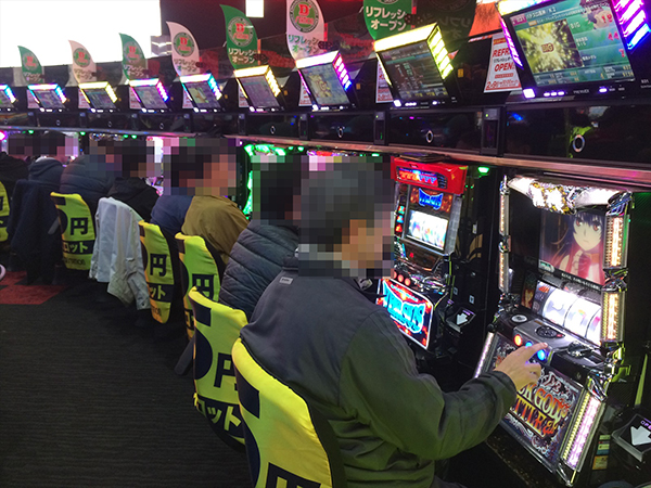 500円/490玉パチンコも大きくにぎわっており、空き台が少なく盛況な状況。