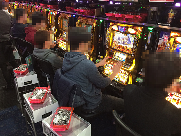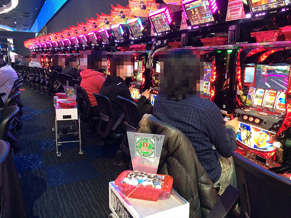 500円/98枚パチスロも注目度が高く、高稼働を維持。充実感を得られているようなプレイヤーの明るい表情が印象的だ。