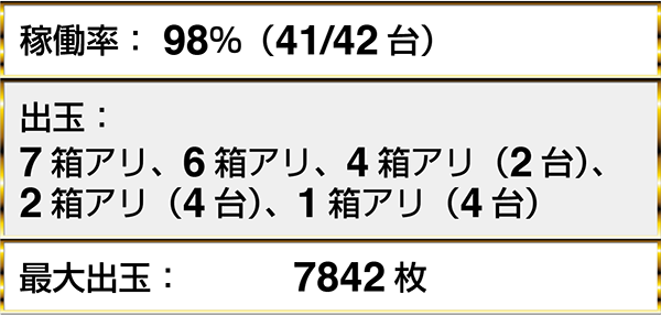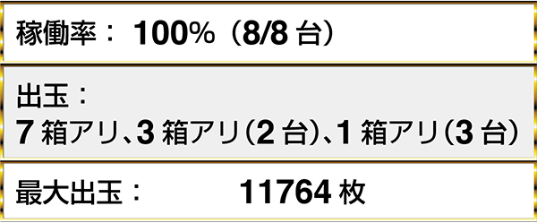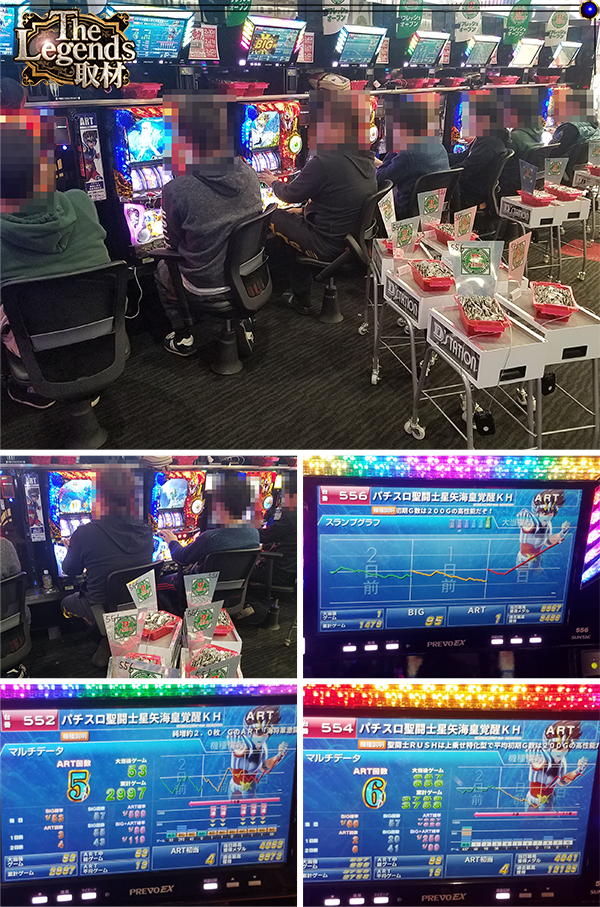 満席となっていた『パチスロ聖闘士星矢 海皇覚醒』は8台中6台で持ち玉による遊技がおこなわれており、7箱以上の出玉も確認した。