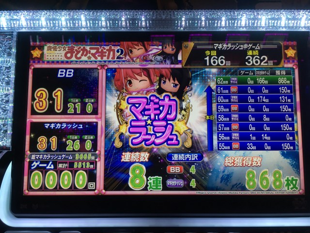 周りを見ても、多くのユーザーさんが納得いく出玉を獲得されており、本日もまどかコーナーは大当りではないかな! と思いました。