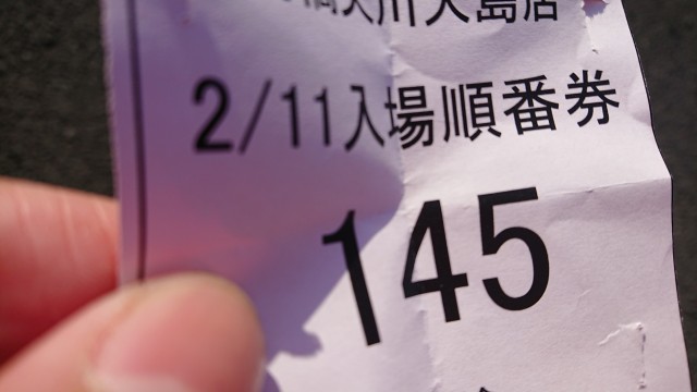 さて朝の並びは一般入場入れて300人ほど、僕の入場整理券は145番!!