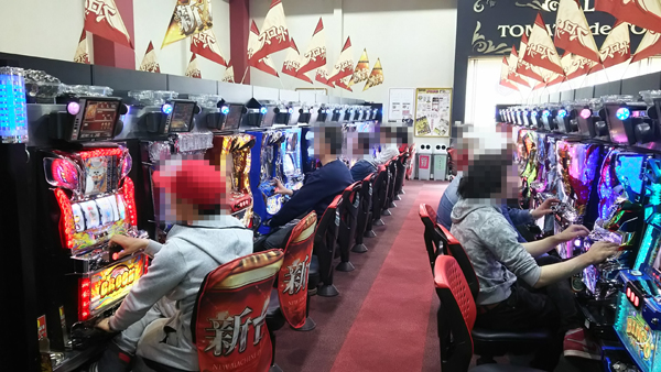 ボーナスタイプではジャグラーシリーズが大盛況。各機種が空台を見つけるのが大変なほどの稼働状況となっており、プレイヤーたちも満足そうな様子だった。