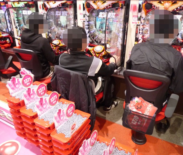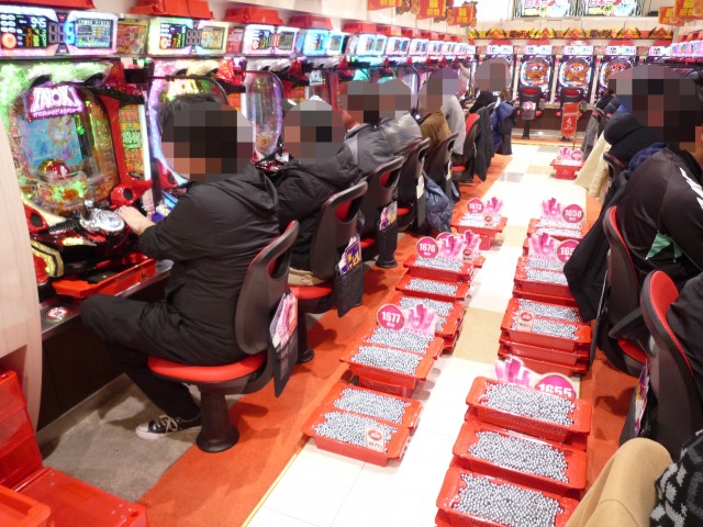 取材班は、通路に並べられたドル箱の多さにビックリ仰天した。