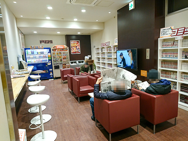 幅広いジャンルの漫画本や大型テレビが用意されたレストスペースは、多くのプレイヤーから好評。取材時も利用するプレイヤーが見られ、皆リフレッシュできているようだった。