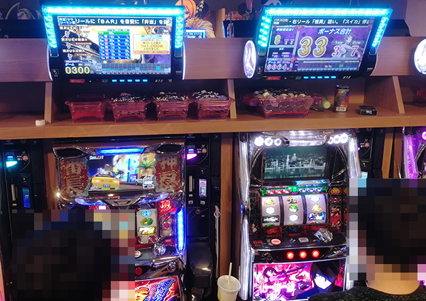 14時をまわった頃のホール内では、「バジリスク~甲賀忍法帖~絆」や「押忍!サラリーマン番長」、「押忍!番長3」に活躍をするプレイヤーを確認している。