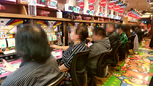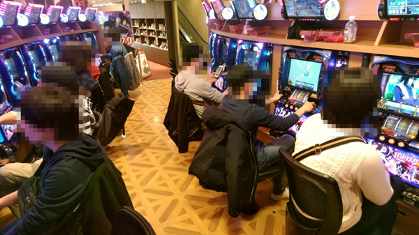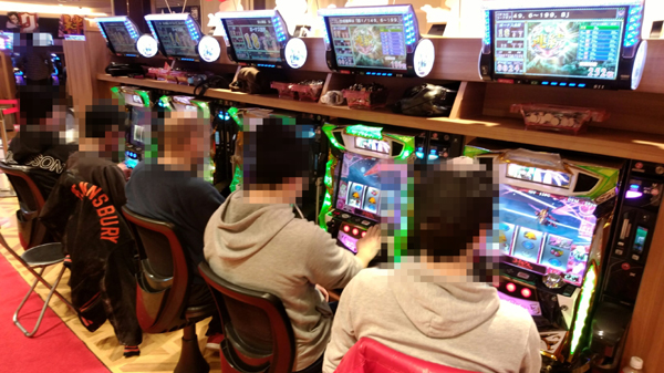 15時頃の店内では、「バジリスク~甲賀忍法帖~絆」や「パチスロコードギアス反逆のルルーシュR2 C.C.ver.」などが空台がほとんど見当たらないほどの大盛況。機種のポテンシャルを発揮するプレイヤーも多数確認でき、コーナー全体が活気づいていた。