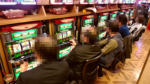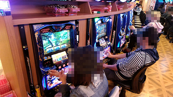 14時半を回った頃の店内では、ジャグラーシリーズの盛り上がりがより一層際立っており、「ジャグラーガールズ」や「ニューアイムジャグラーEX‐KA」などで機種のポテンシャルを上手く発揮できているような姿を確認できた。