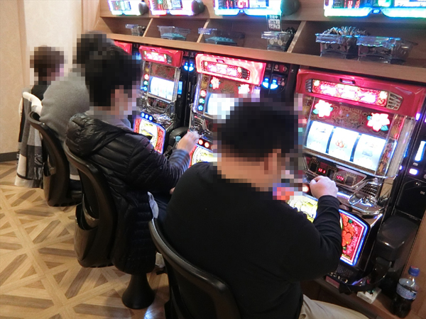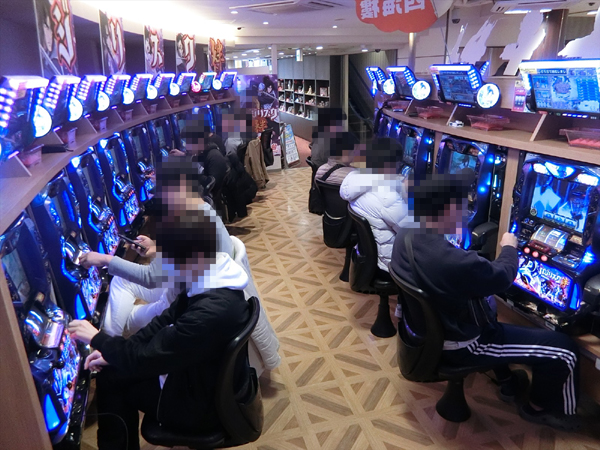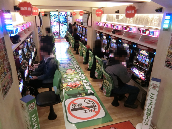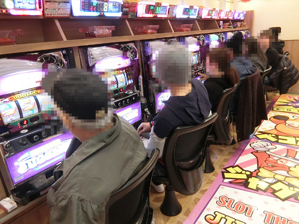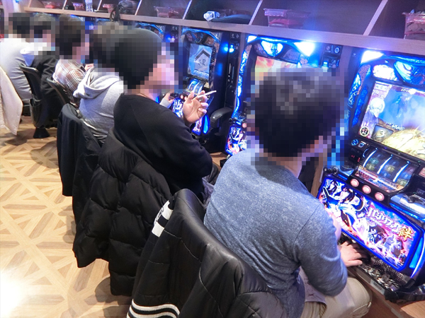 1階の一角にはジャグラー禁煙エリアが設けられており、クリーンな空気の中、多くのプレイヤーがジャグラーシリーズをまったりと楽しむ姿を確認している。
