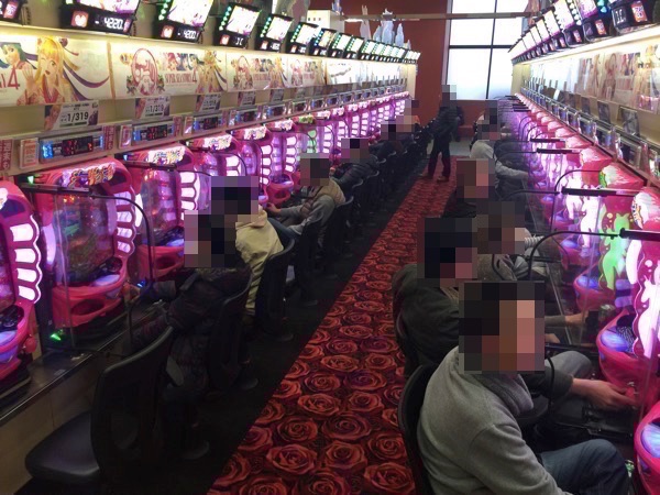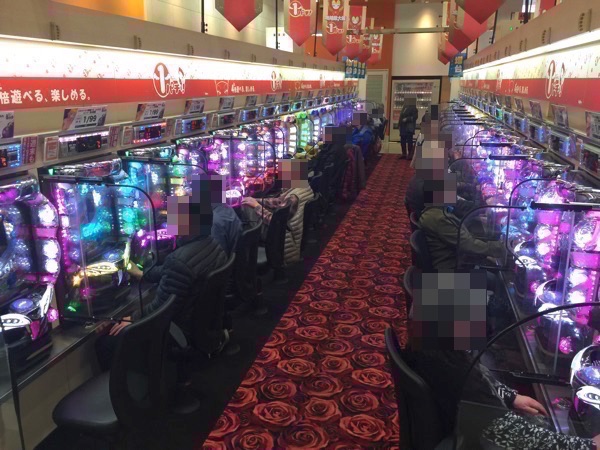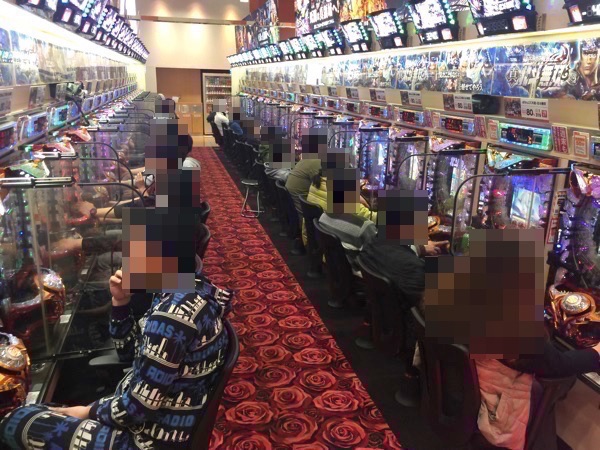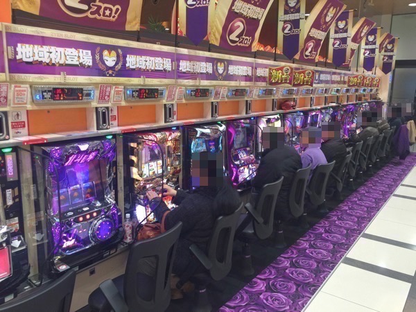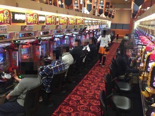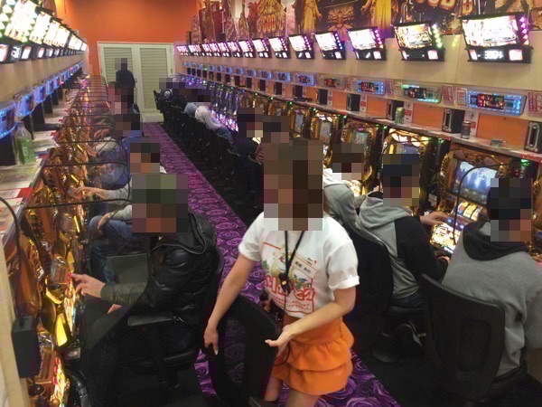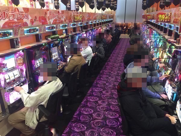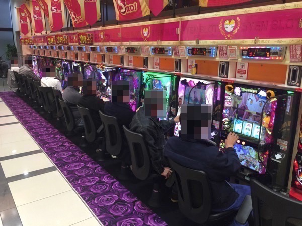 5円パチスロ・2円パチスロの人気も高い。どのプレイヤーも低貸しの魅力をしっかりと楽しんでおり、シマ全体から明るい雰囲気が感じられた。