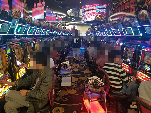 3月18日は大勢のプレイヤーが集まり、さまざまな機種が満席といった状況。キラキラとした笑顔もみられ、すべてのシマがにぎやかな雰囲気に包まれている印象を受けた。