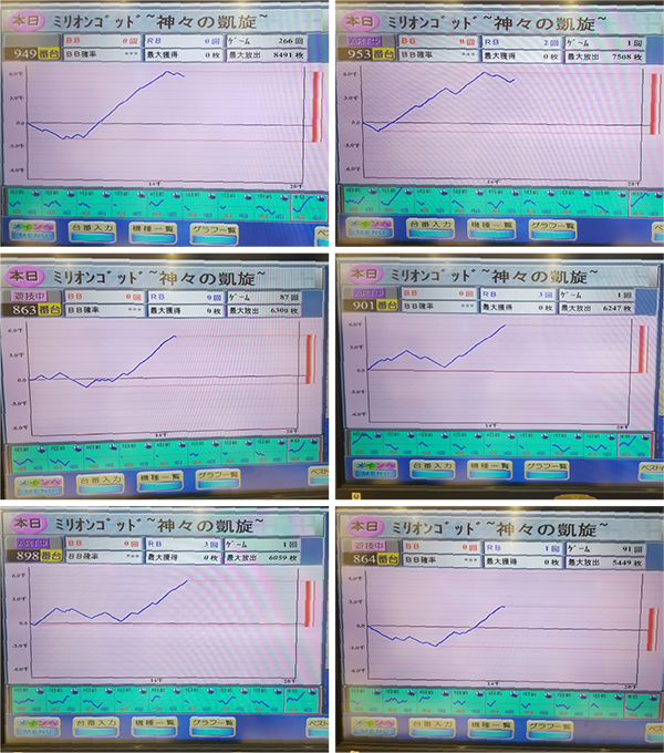・『ミリオンゴッド-神々の凱旋-』に最大獲得枚数5000枚超が6台