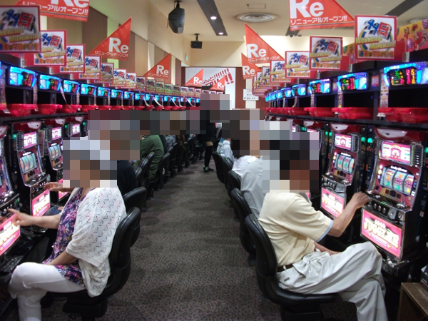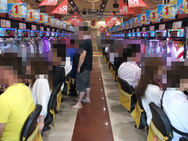 15時を過ぎるころの様子は、ホール全体が活気づいているといったイメージで、増台も予定されている海物語シリーズや「沖ドキ!-30」などの盛り上がりがとくに大きい。