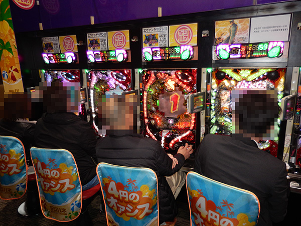 14時を過ぎた頃の4円パチンコでは、新台の「CRF革命機ヴァルヴレイヴ」が若年層に受け高稼働。