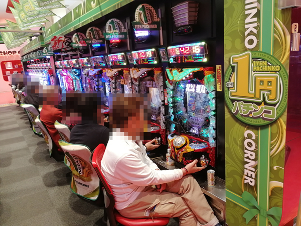 1円パチンコは、コーナー全体が明るい雰囲気。まったりと楽しんでいるだけでなく、機種のポテンシャルを発揮しているといったプレイヤーの姿も見られ、充実した時間を過ごせているようだった。