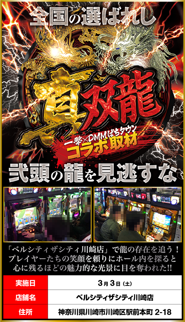 川崎駅と京急川崎駅から徒歩圏内に位置する「ベルシティザシティ川崎店」を舞台に「真双龍」を敢行。