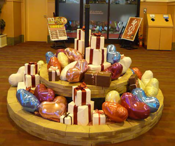 また、おしゃれな街灯やバレンタインを意識した装飾などでホール内が彩られていることも印象的。