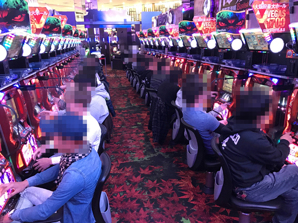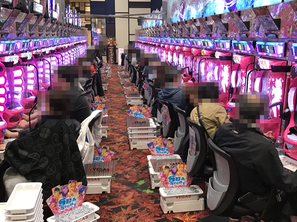 20円パチスロコーナーの盛り上がりは特に大きく、どの機種もほとんど空台が見当たらない状況となっていた。