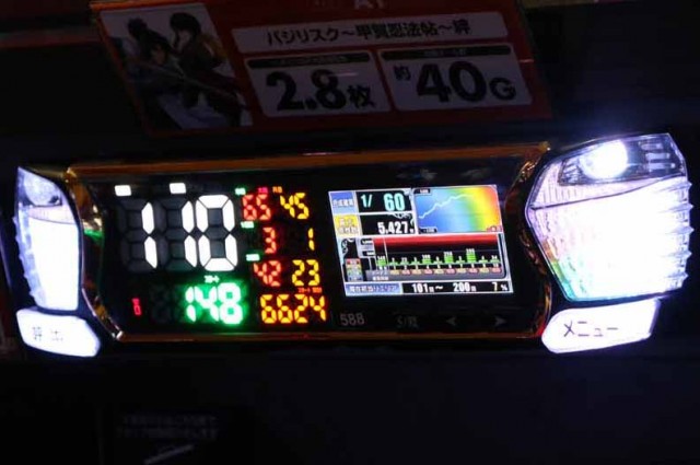 真っ先に満台御礼となったのは『バジリスク~甲賀忍法帖~絆』、『沖ドキ!』。勝負好きの若者を中心に依然、両機種の人気が高いことを確認!