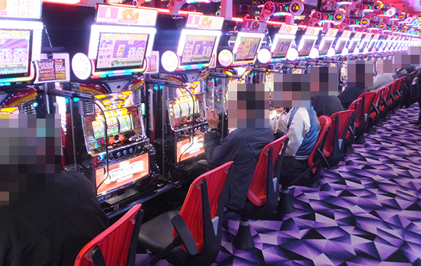 高稼動となっていた「マイジャグラーⅢ」で、楽しげな光景を確認。
