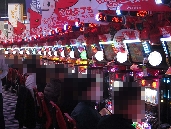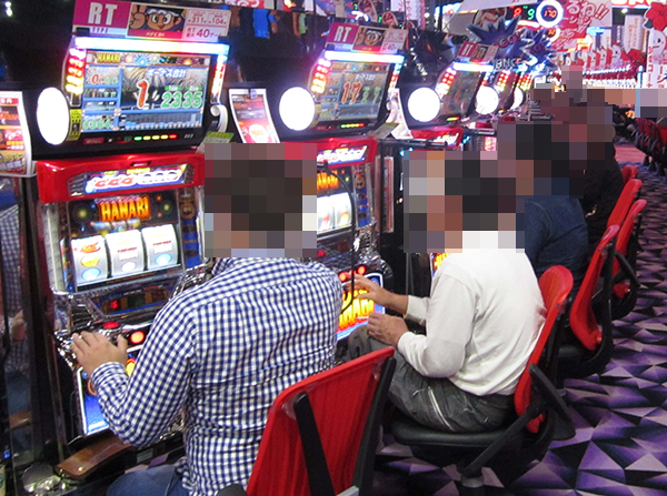 初日の午後における1000円/47枚パチスロのなかで、もっとも目立っていたのが「沖ドキ!-30」。稼働率が高いうえに笑顔も多く、明るい雰囲気に包まれていた。