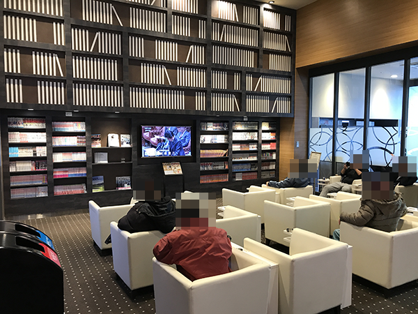 店内には開放感のあるレストスペースも完備されている。漫画やテレビといった設備が充実していることも、プレイヤーにはうれしい要素となっているようだ。
