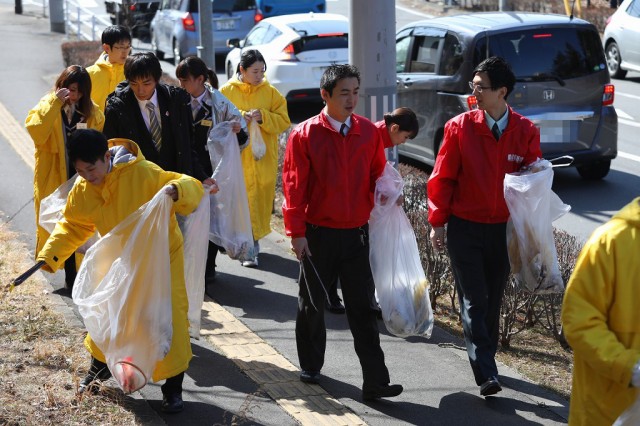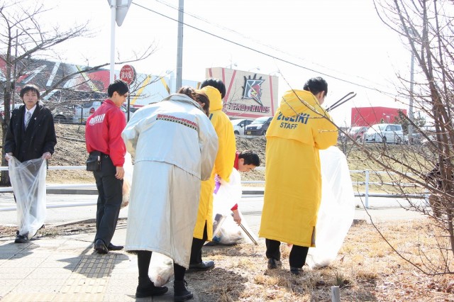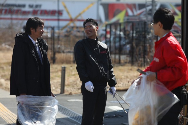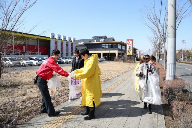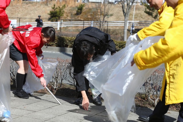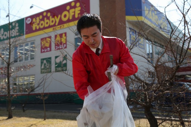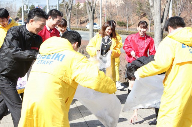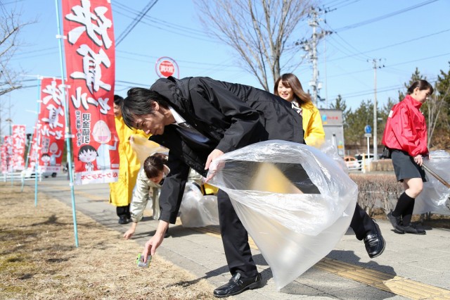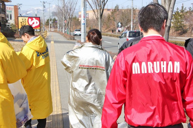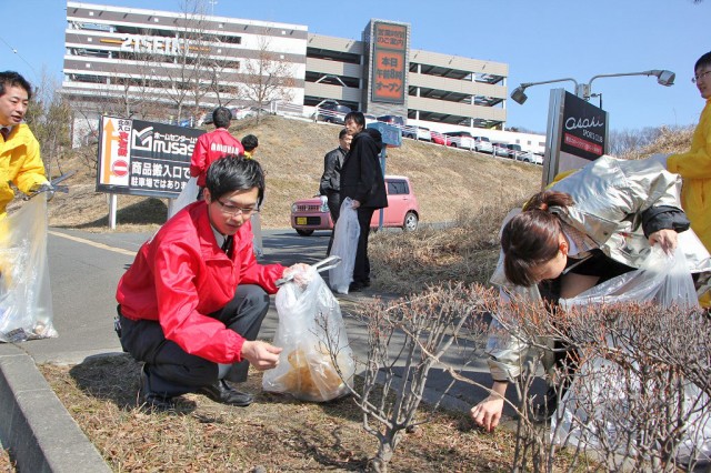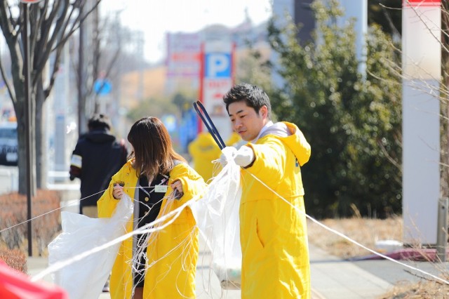 各店舗が協力してごみ拾い。時には助け合い、時には和やかに会話を楽しみ、時には素手でゴミを拾っていたーー。