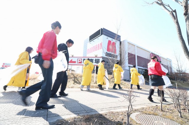 各店舗の周りはもちろん、周辺の施設に面する歩道をみっちりとごみ拾い。