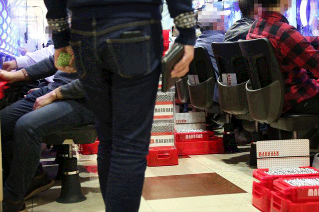 大当りの余韻に酔いしれるファン。