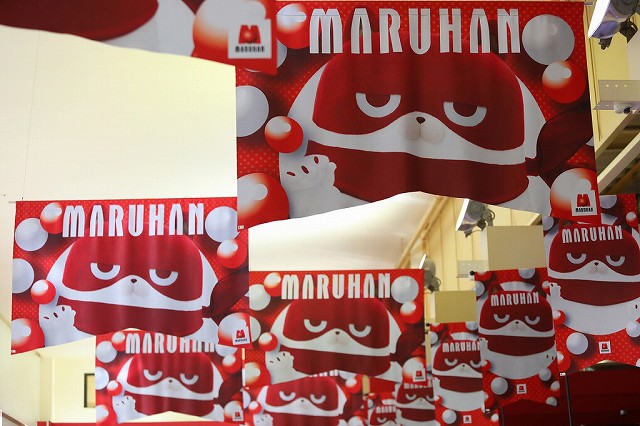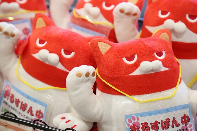 ジト目で見守る「にゃんまる」のぼりが、この日もファンを大歓迎!!