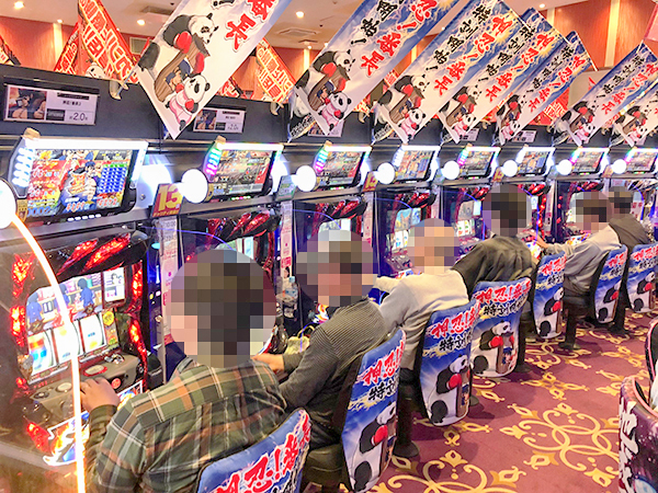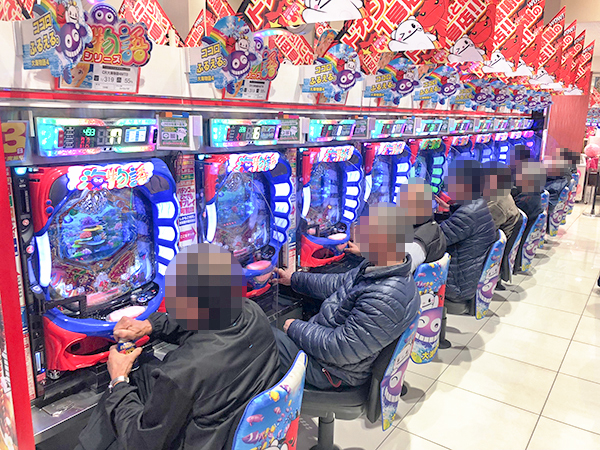 1円・0.5円パチンコも空き台を見つけることが困難なほどの状況で、多くのプレイヤーから笑みがこぼれていた。