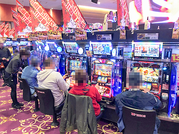 5円・2円パチスロにもプレイヤーが集まっており、至る所で華麗なパフォーマンスを披露していた。