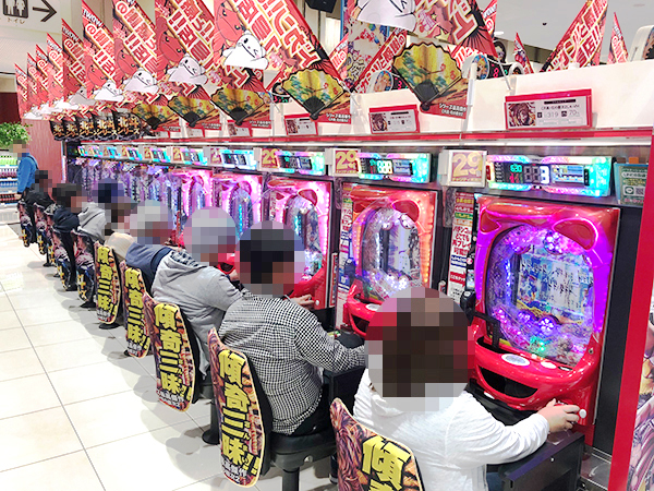 15時過ぎの4円パチンコを見ると、「CR大海物語4」や「CR真・花の慶次2」、「ぱちんこCR真・北斗無双」を中心に活況。それぞれで見事なパフォーマンスを披露するプレイヤーを確認している。