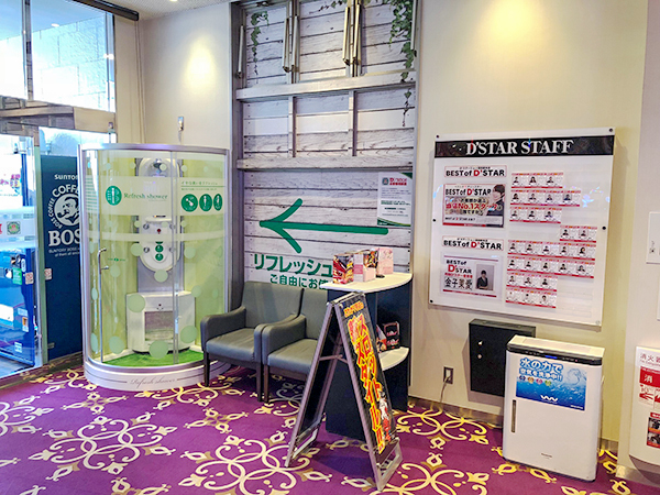 同店はリフレッシュシャワーを完備。タバコのにおいが気になるプレイヤーにとって、嬉しい設備といえそうだ。