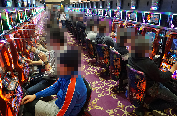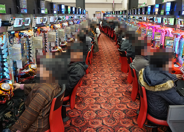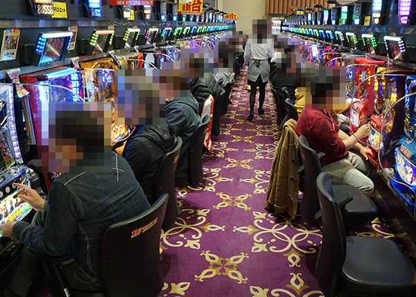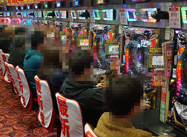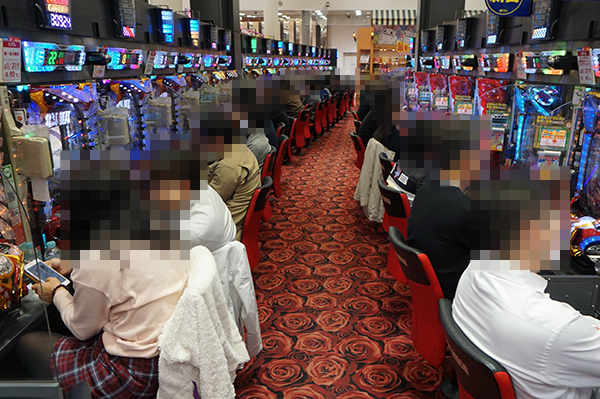 4円パチンコも盛況。「ぱちんこCR真・北斗無双」や「CR真・花の慶次2」など、さまざまな機種がにぎわっていた。